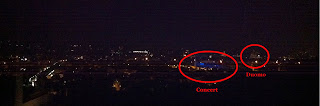 As we dined, we got hear the cheers of the audience at a rock concert in the soccer stadium.